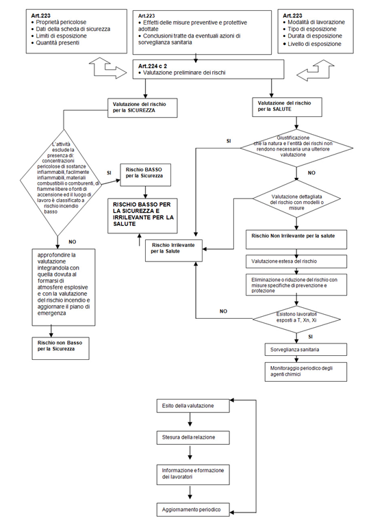 La figura seguente illustra lo schema logico per la valutazione del rischio da esposizione ad agenti chimici, definito in conformità al D.Lgs. 81/08 e alle relative Linee Guida delle Regioni.