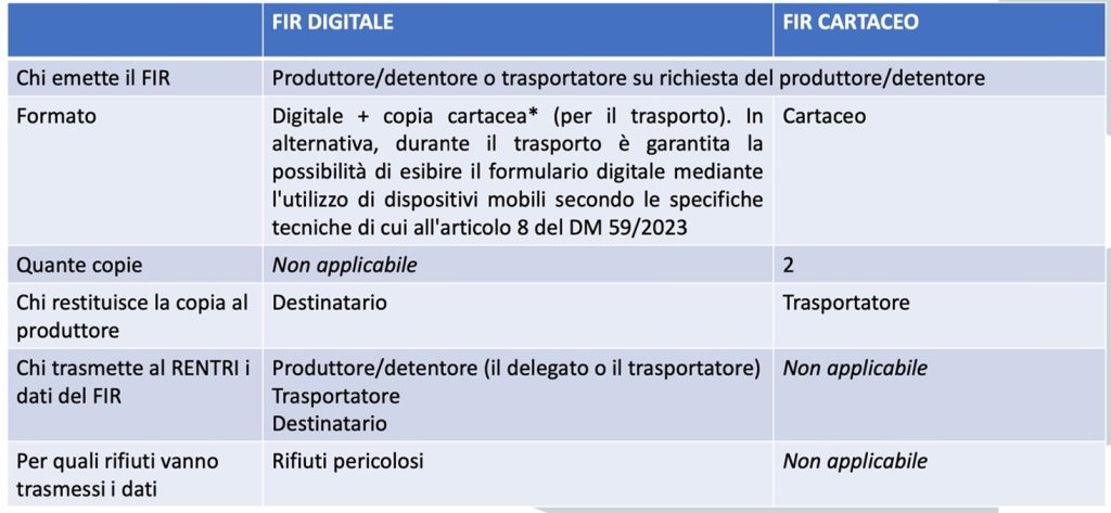 • se il produttore/detentore emette il FIR in formato digitale, tutta la filiera (trasportatori, destinatari) deve gestire il FIR in formato digitale.