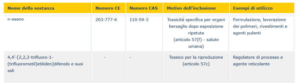 In precedenza, a giugno 2025, l’ECHA ha aggiunto tre nuove voci all’elenco delle sostanze chimiche che possono danneggiare le persone o l’ambiente.